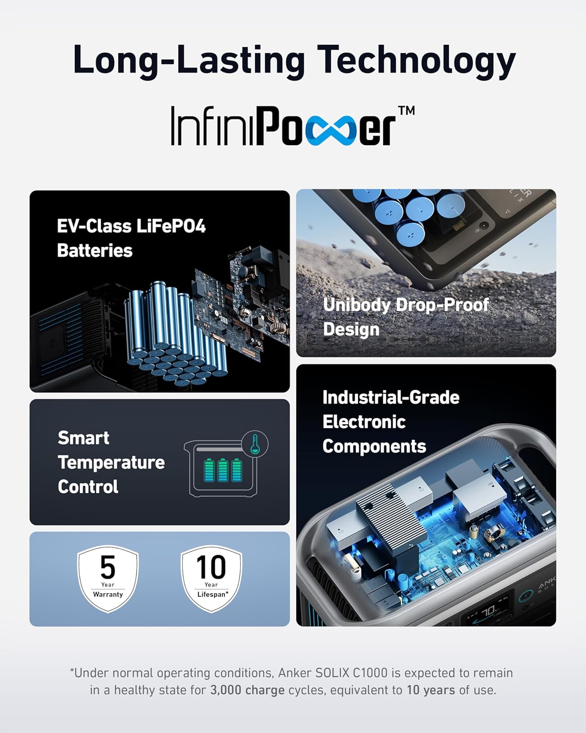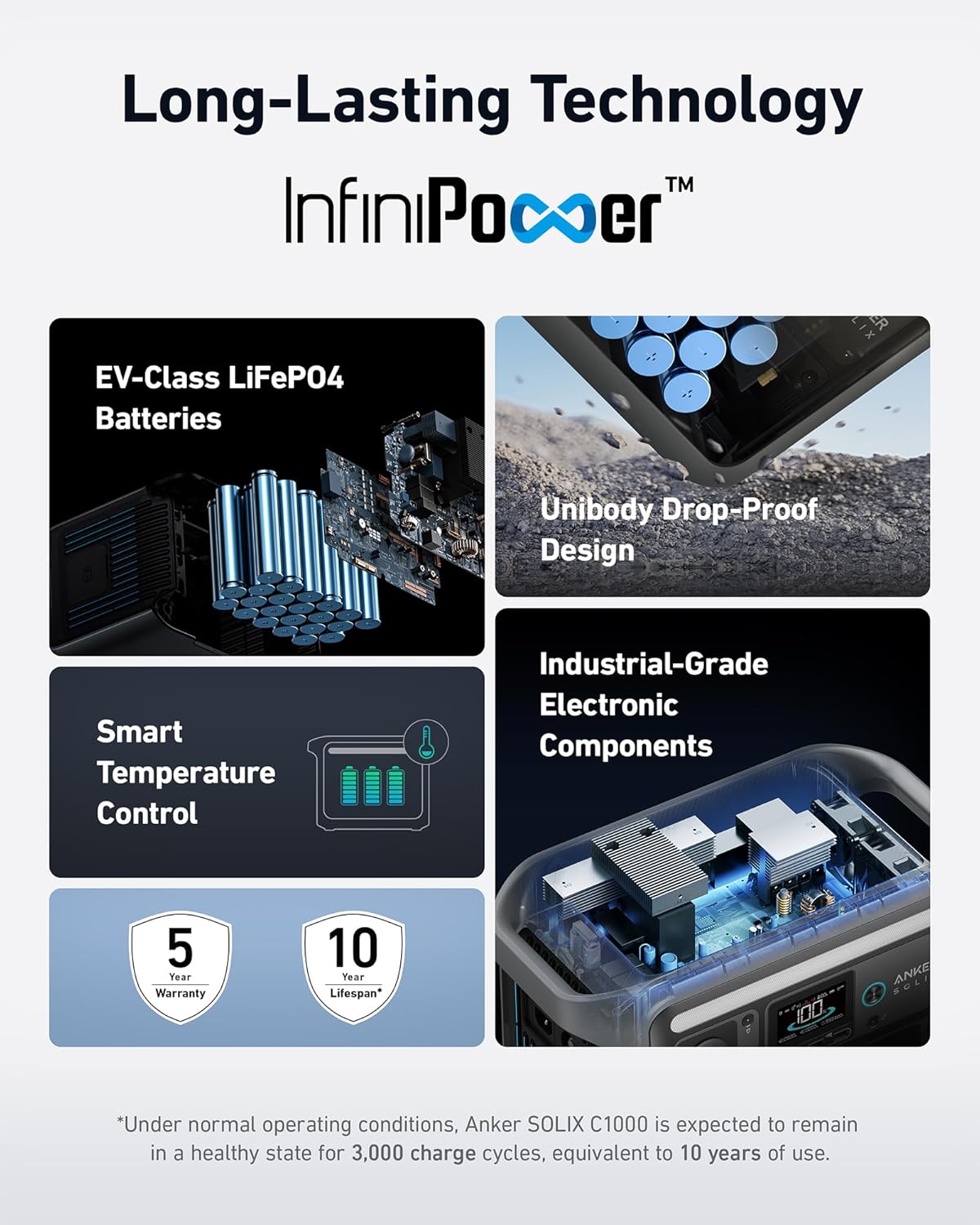 | Included Components | Anker SOLIX C1000 Portable Power Station, solar charging cable, 9.84ft solar charging cable, AC charging cable, car charging cable, user guide, Anker SOLIX PS200 Solar Panel (200W). |