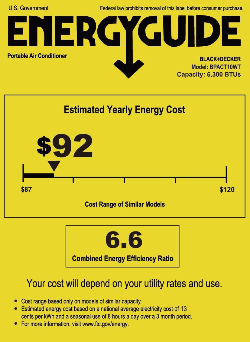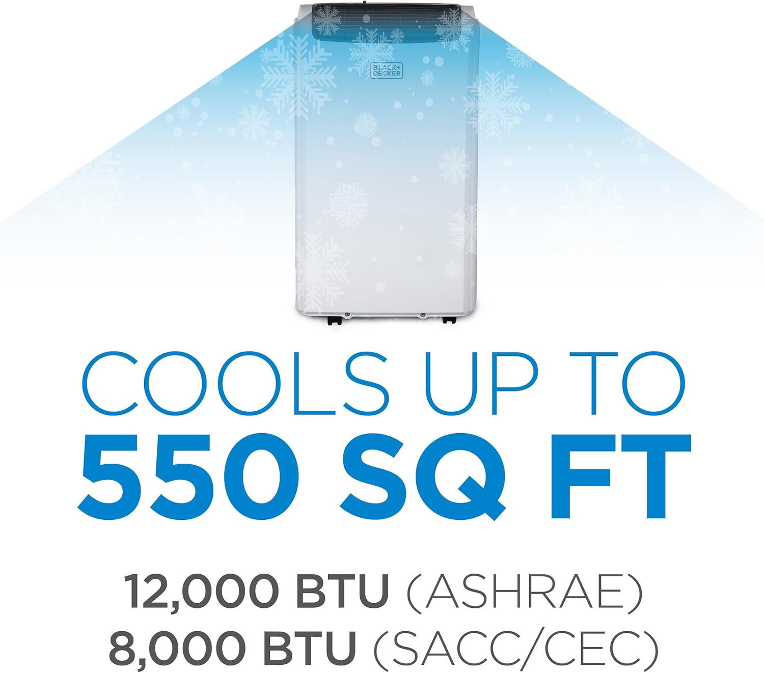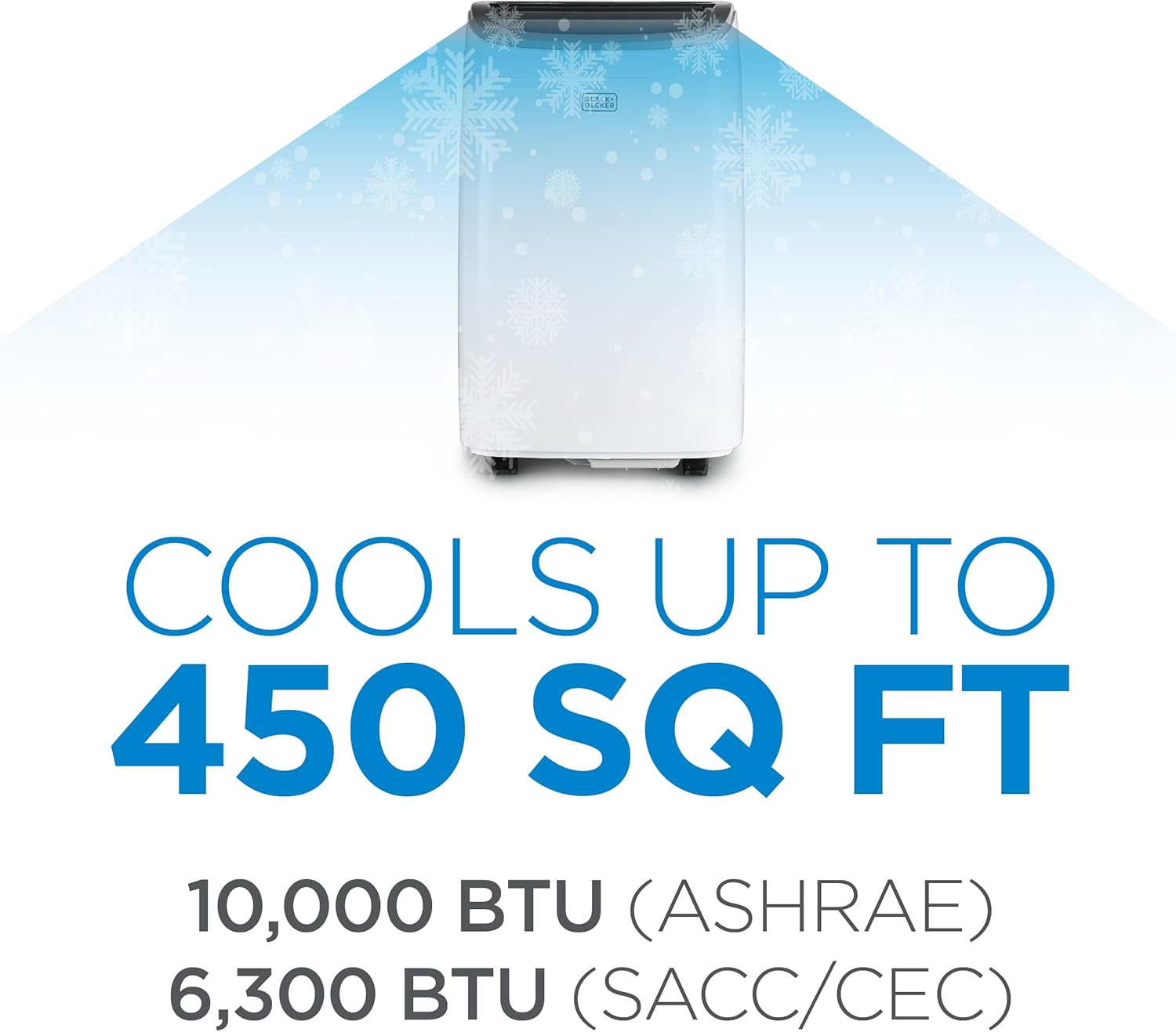 • BLACK+DECKER 10,000 BTU Portable Air Conditioner for Rooms up to 450 Sq. with Remote Control, White