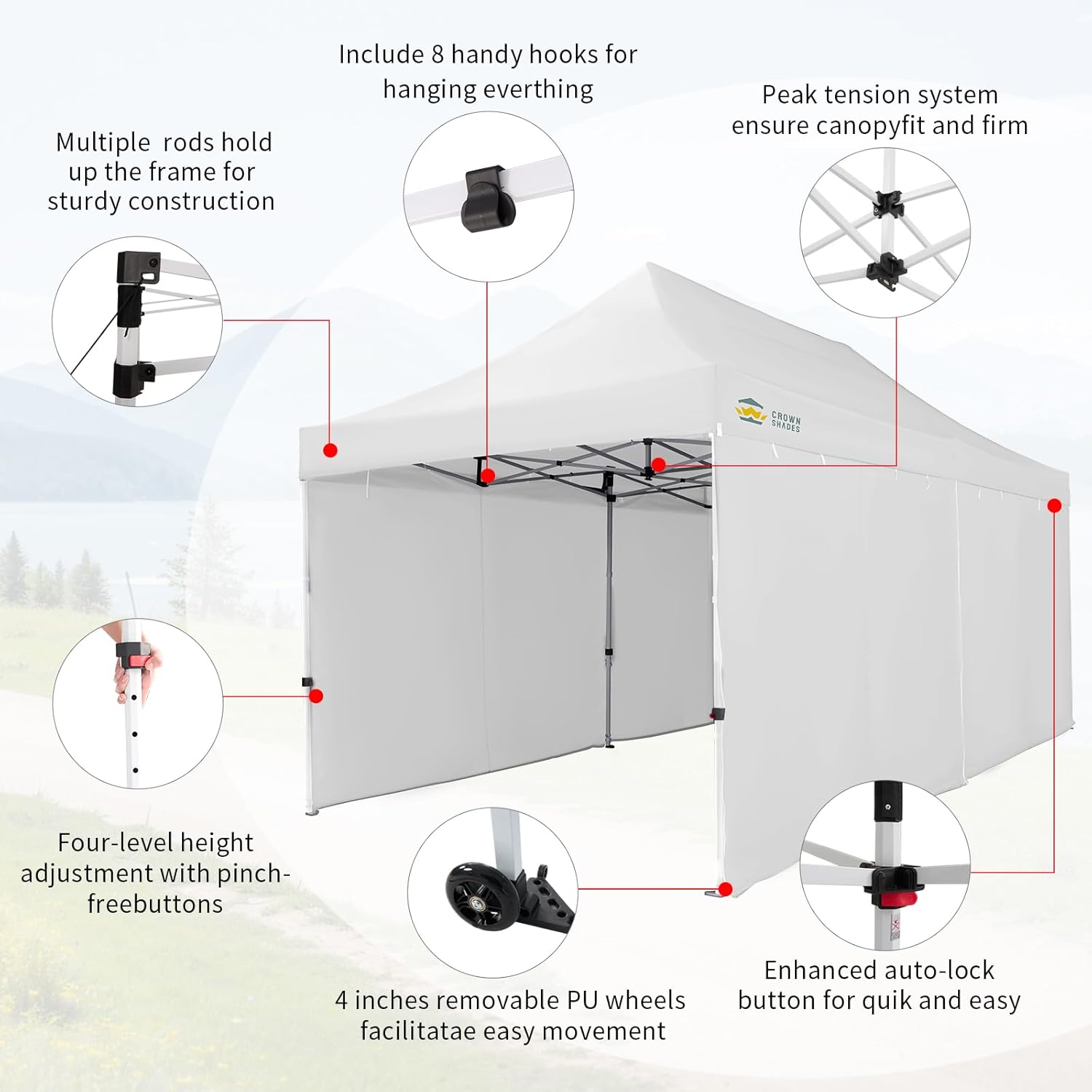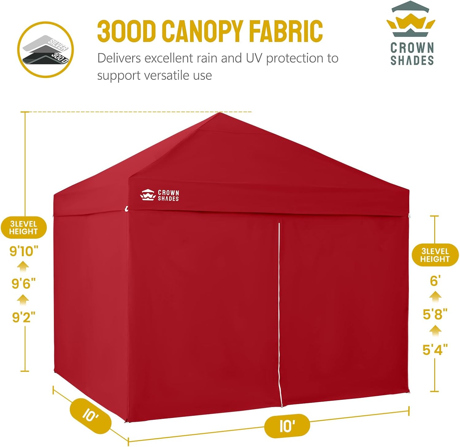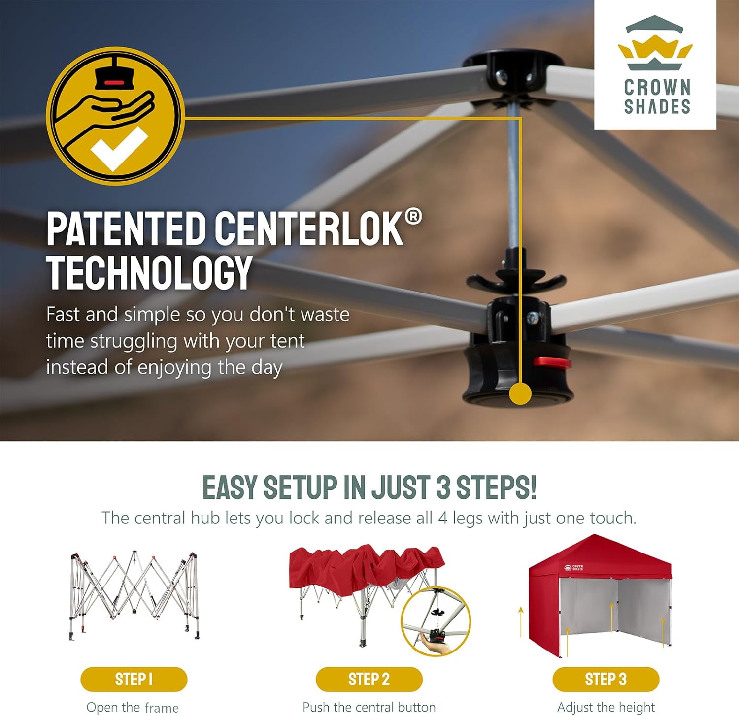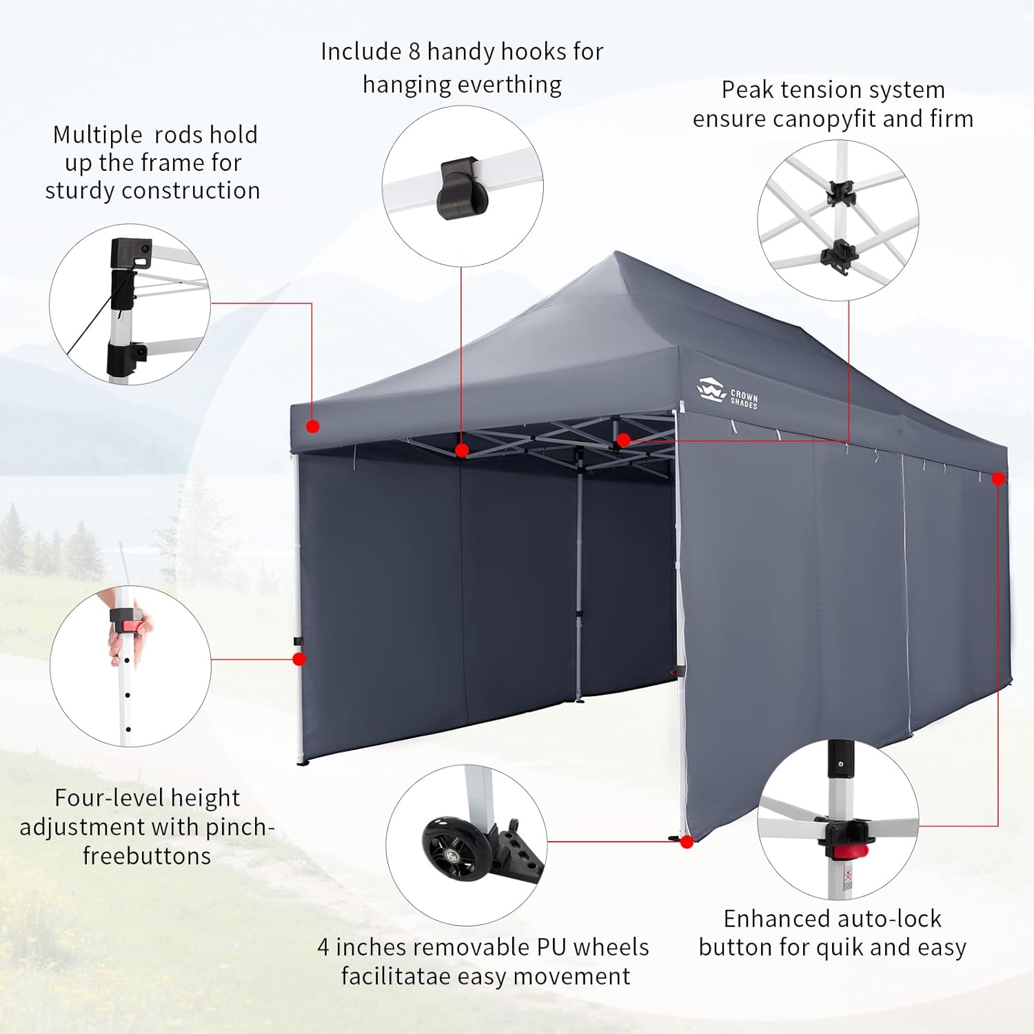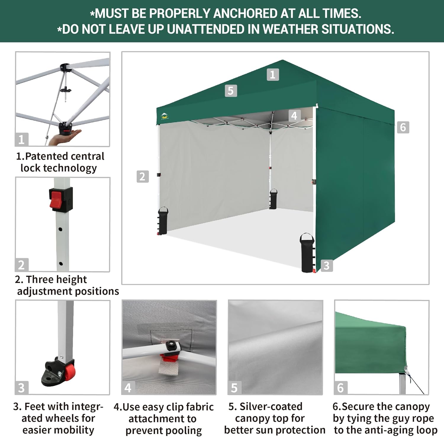 EFFORTLESS HEIGHT CUSTOMIZATION: With our pinch-free design, easily adjust the height of your pop-up tent canopy to three different levels. This feature allows for quick changes on the outdoor tent canopy, ensuring optimal functionality in any setting.