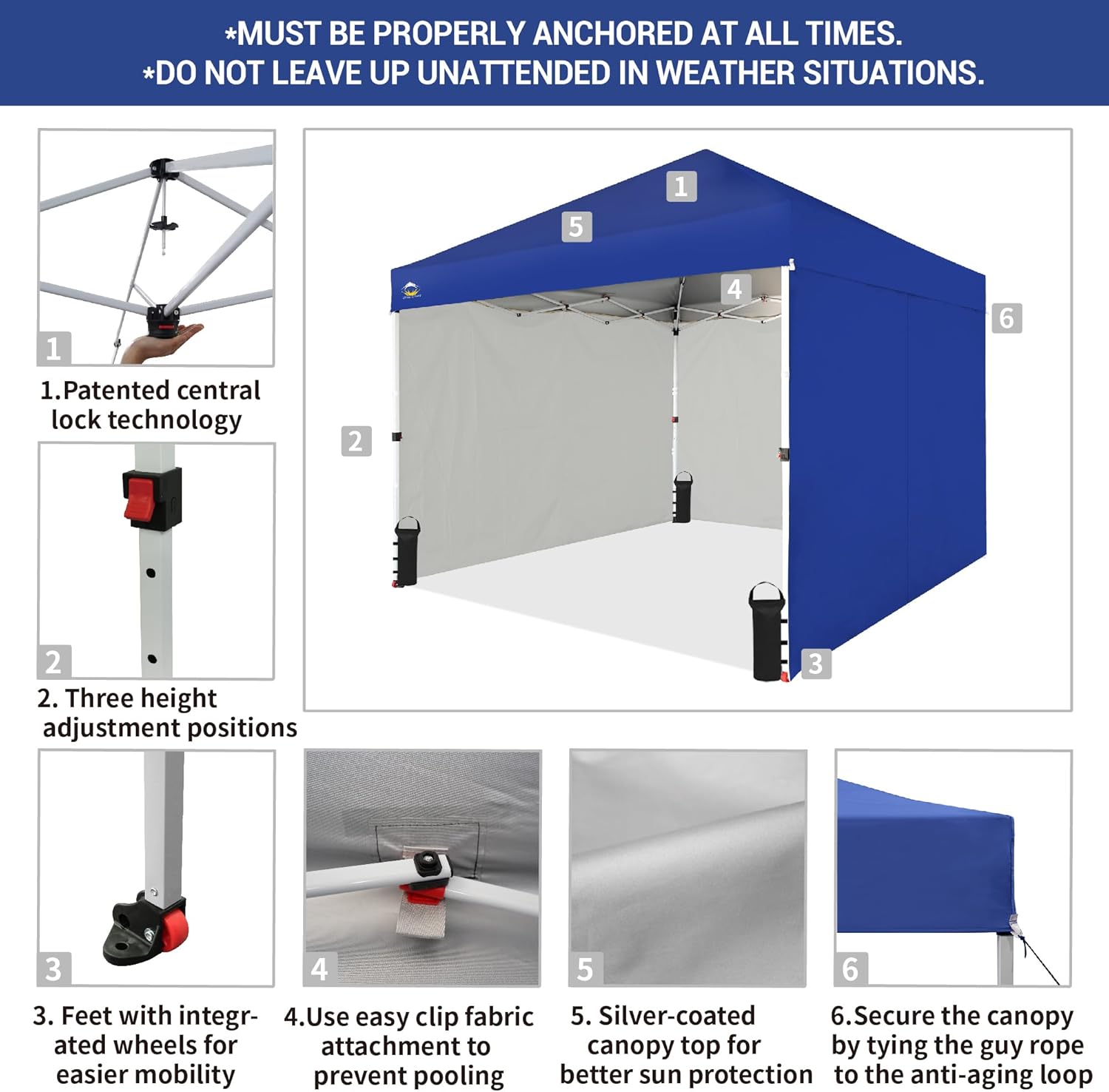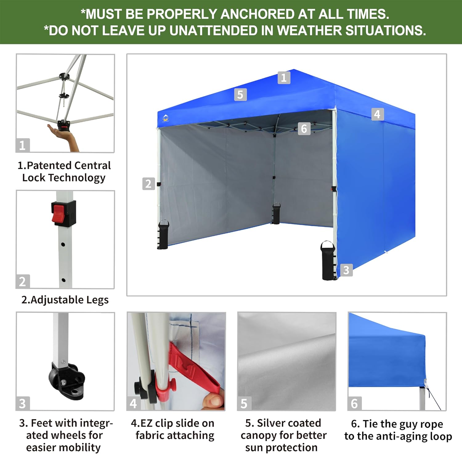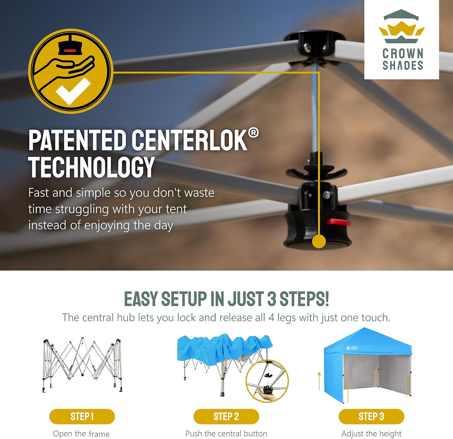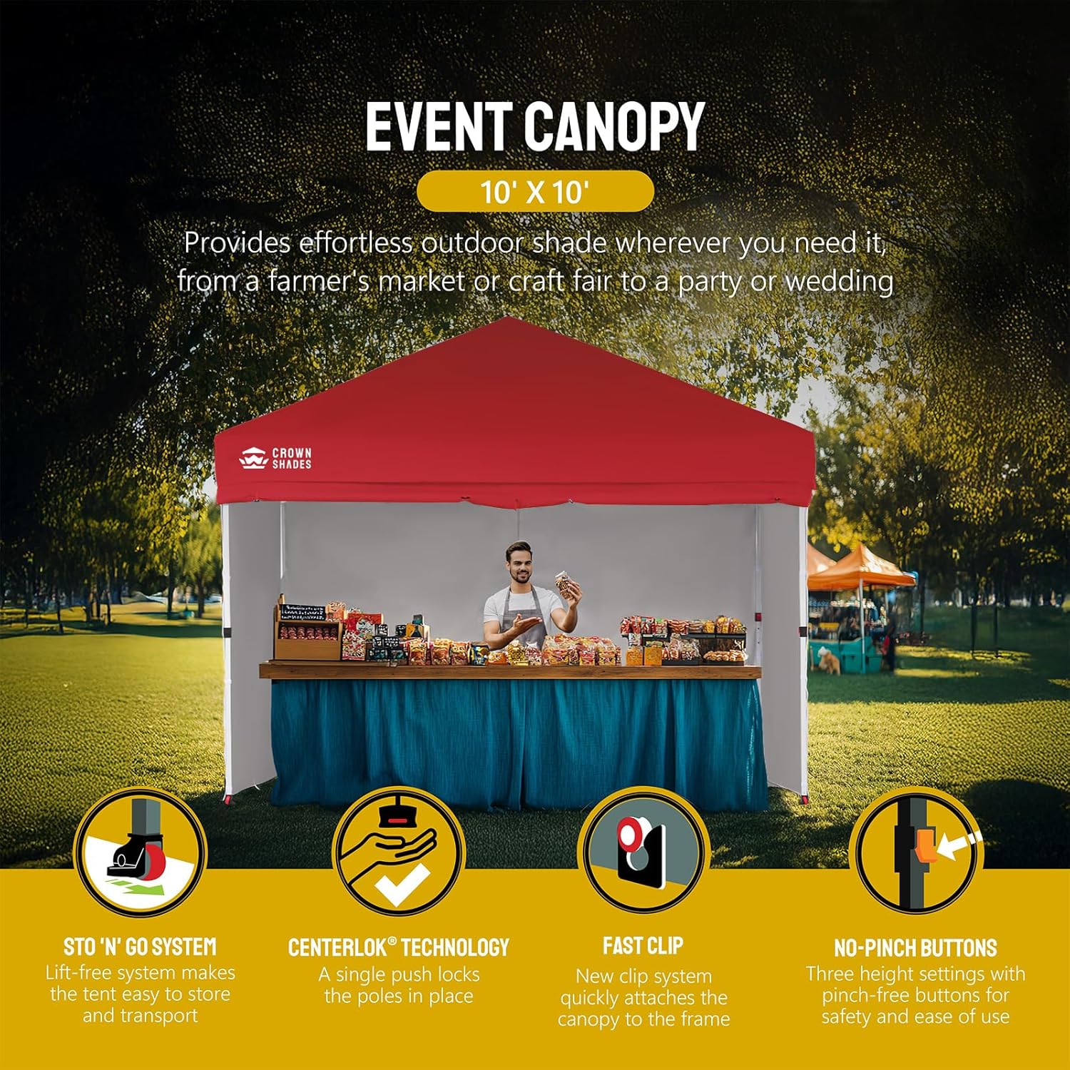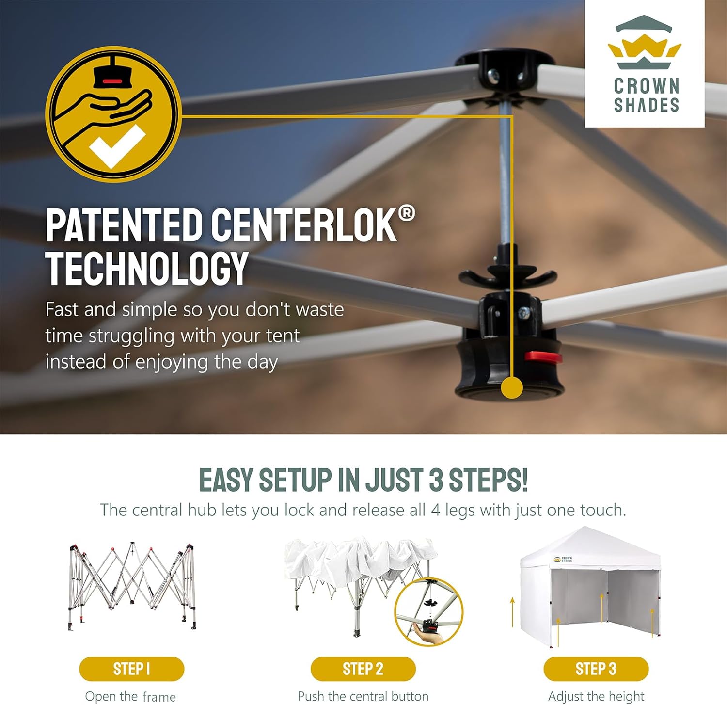 EFFORTLESS HEIGHT CUSTOMIZATION: With our pinch-free design, easily adjust the height of your pop-up tent canopy to three different levels. This feature allows for quick changes on the outdoor tent canopy, ensuring optimal functionality in any setting.