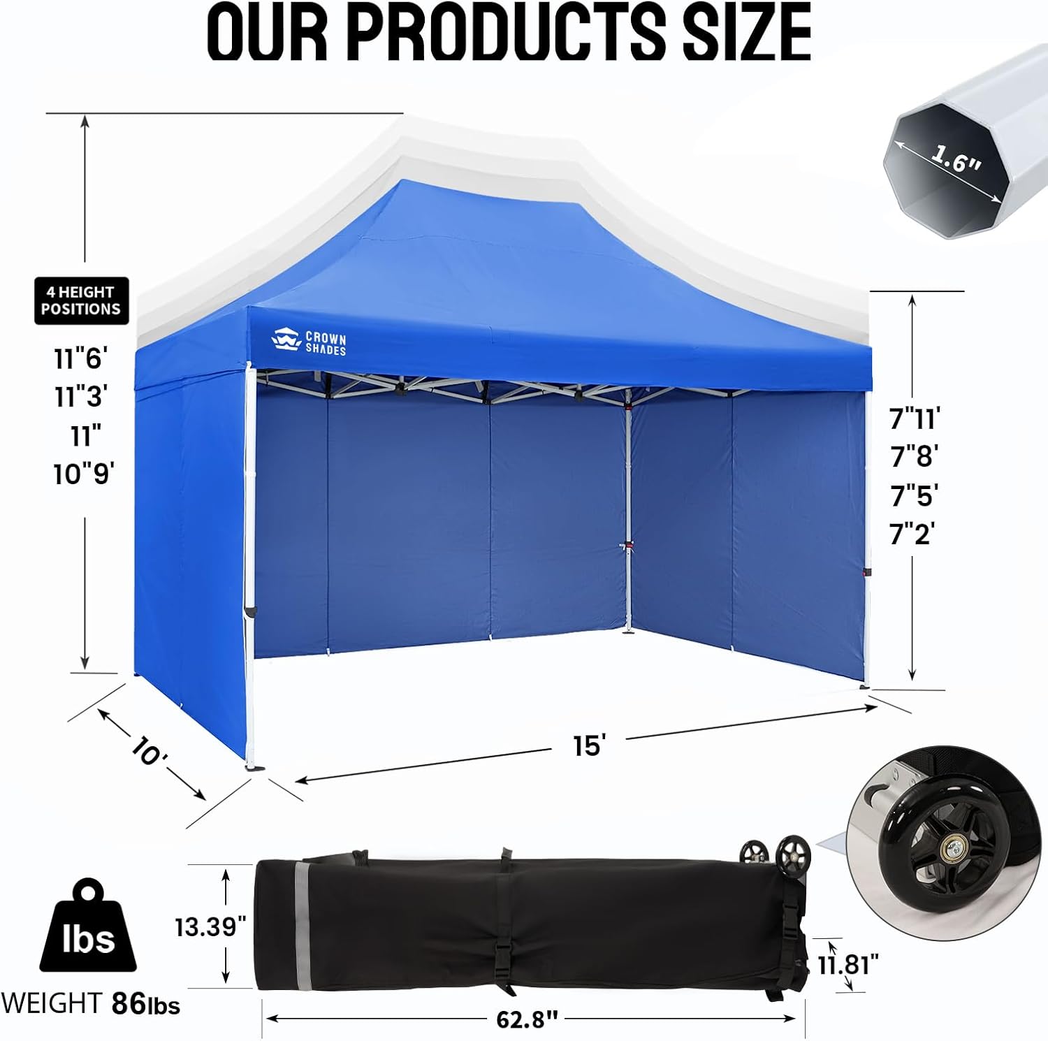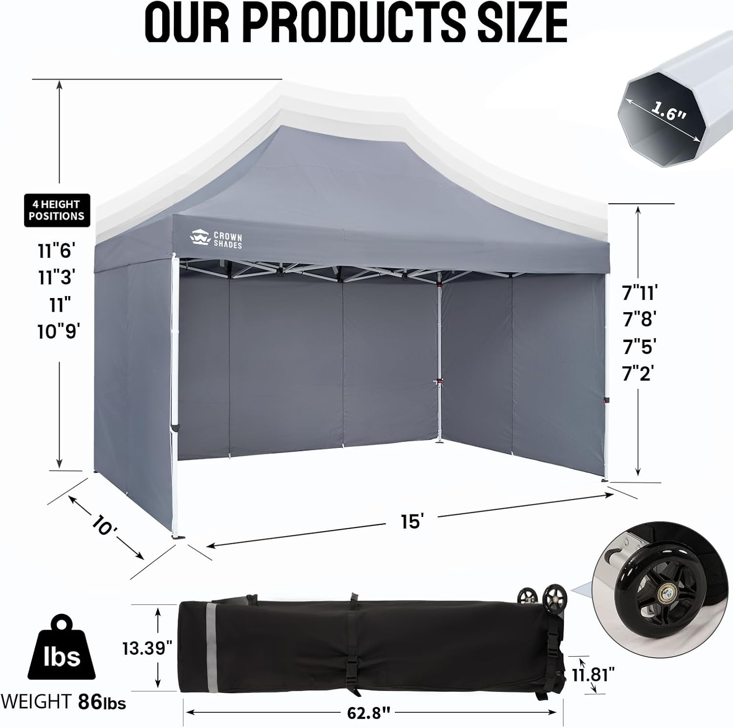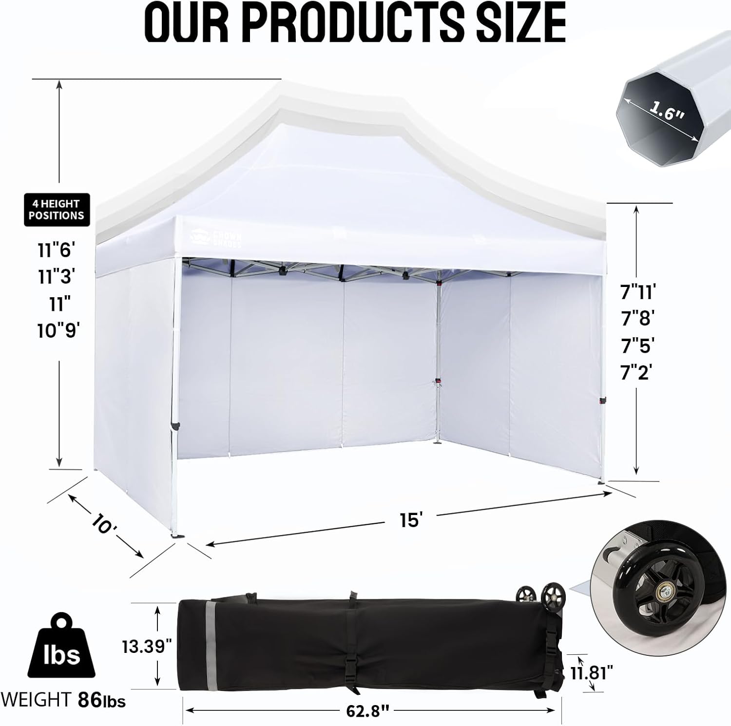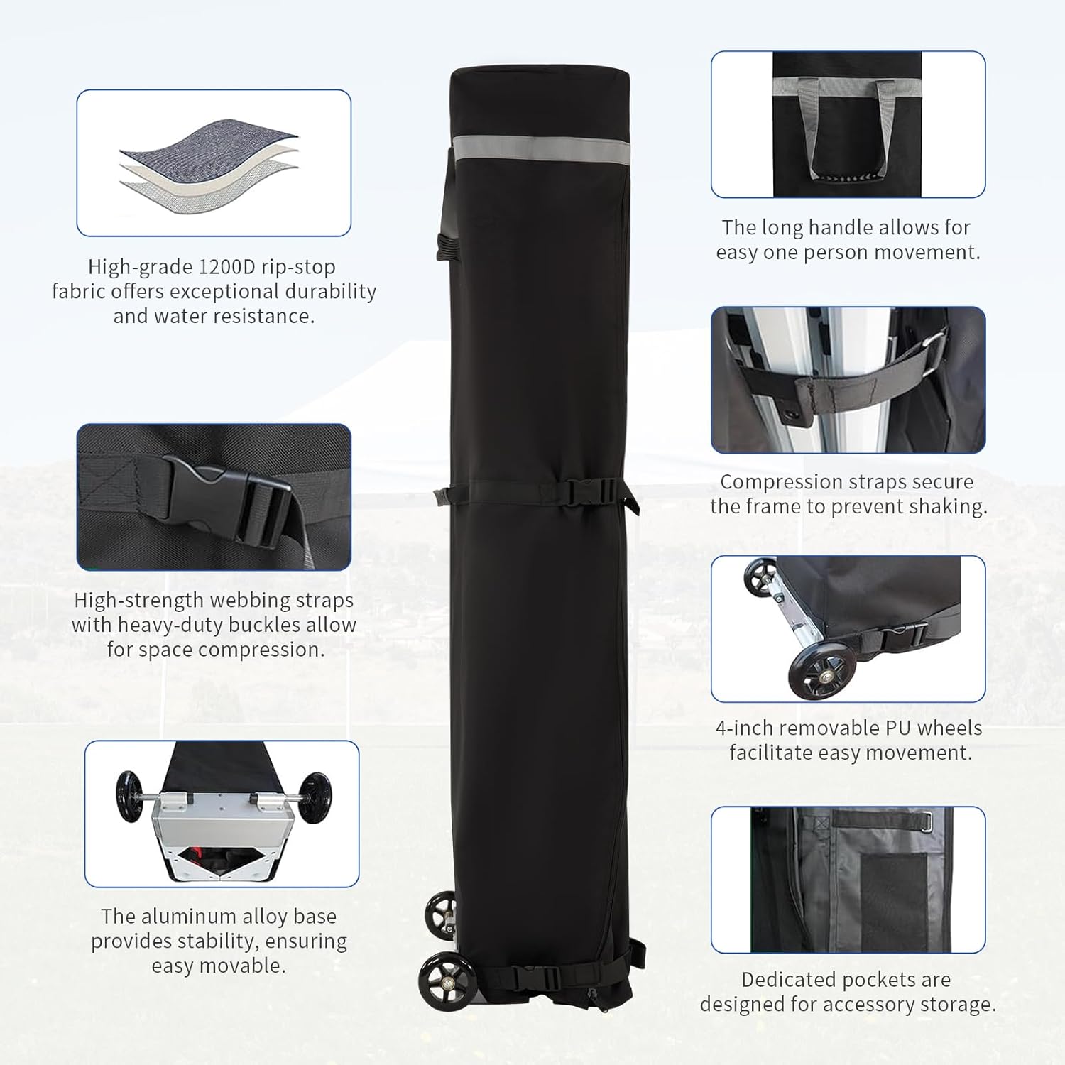 CONVENIENT ROLLER BAG: This 10x15 pop-up canopy comes with a bag that has 4-inch wheels for easy mobility, featuring a spacious opening and a sturdy pull handle. The convenient pocket design can store 4 stakes and 4 ropes, making this canopy an ideal choice for any outdoor event.