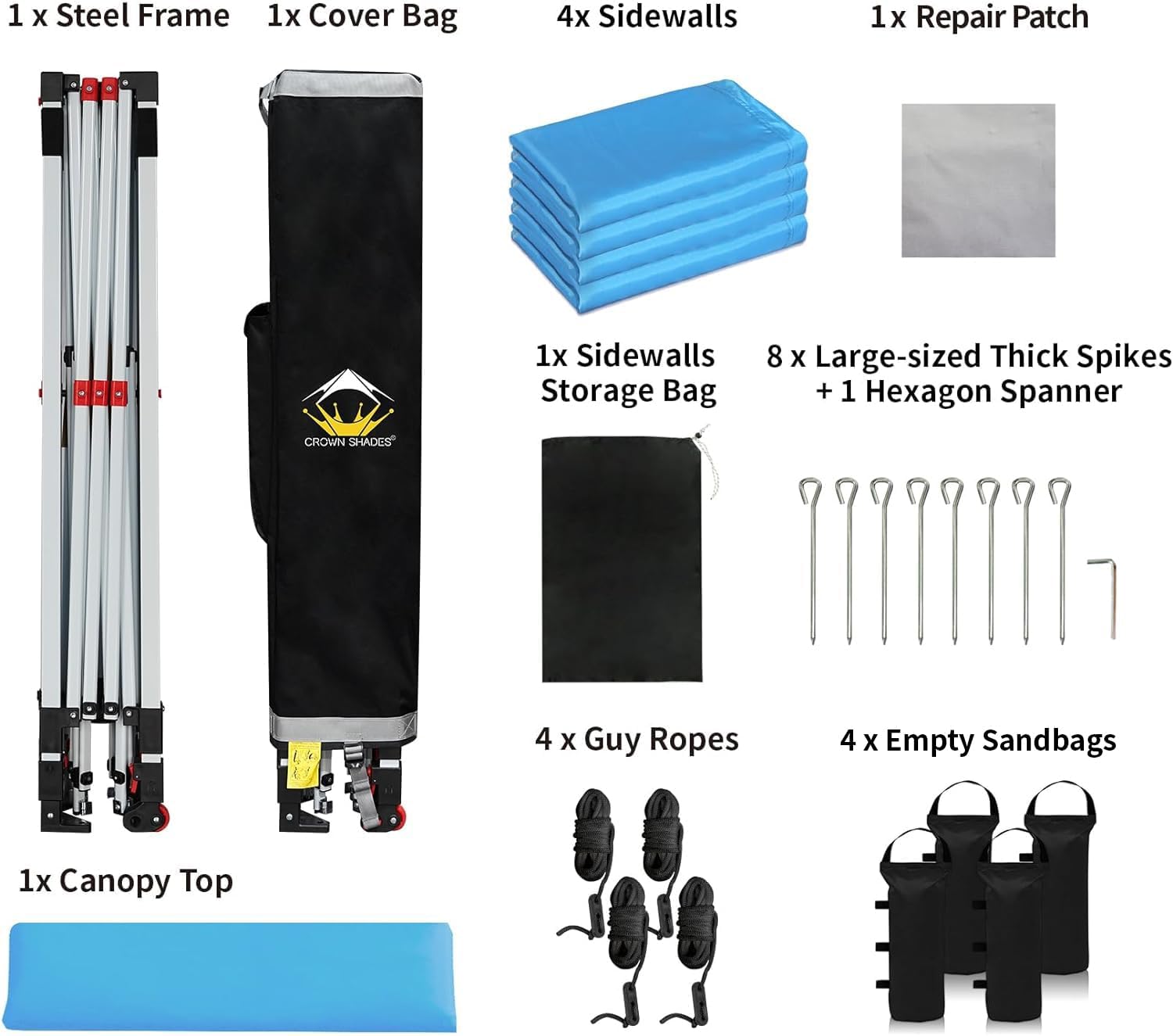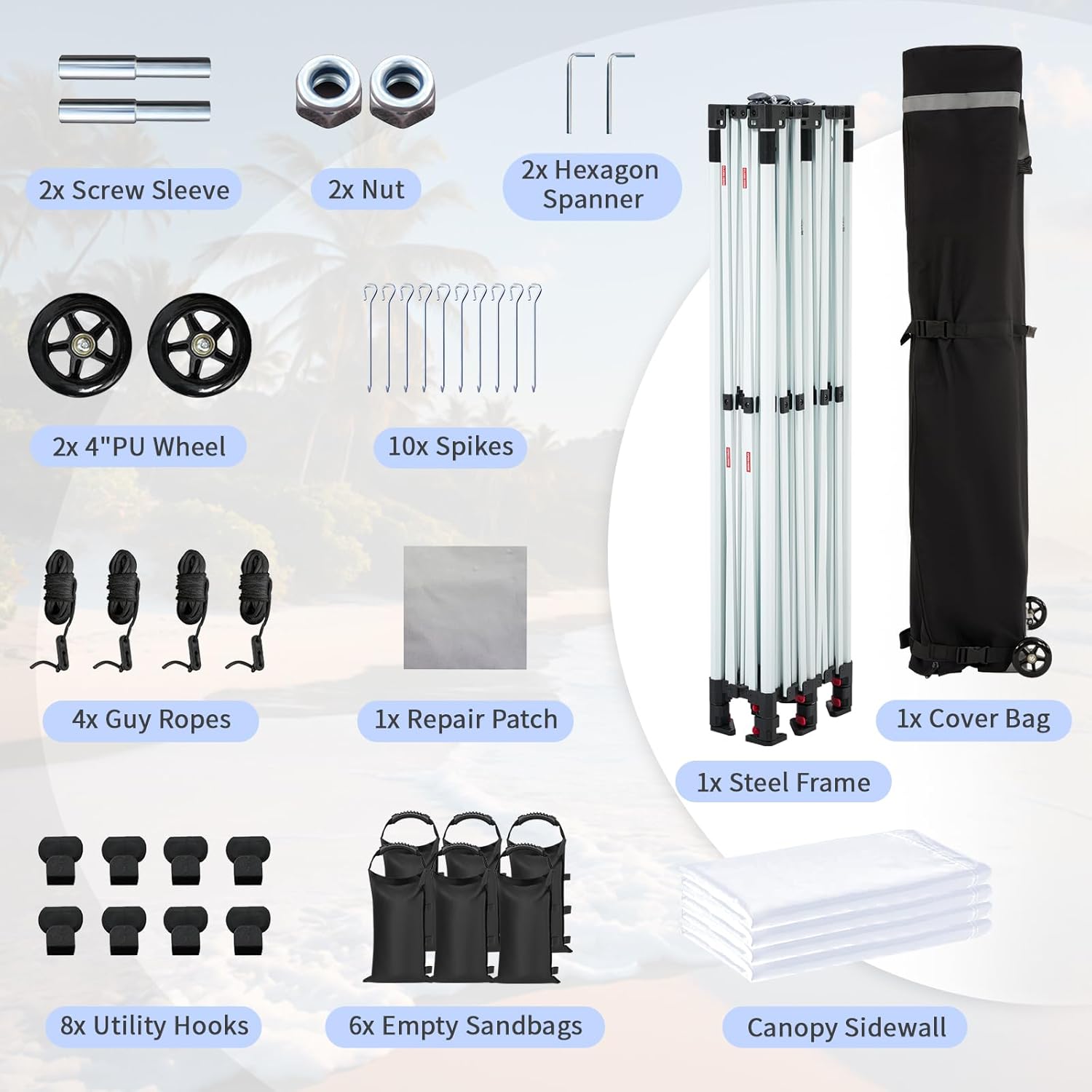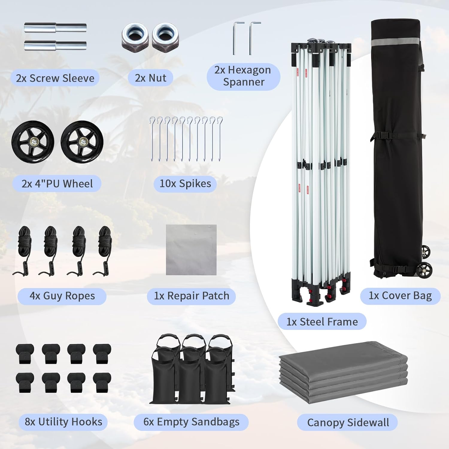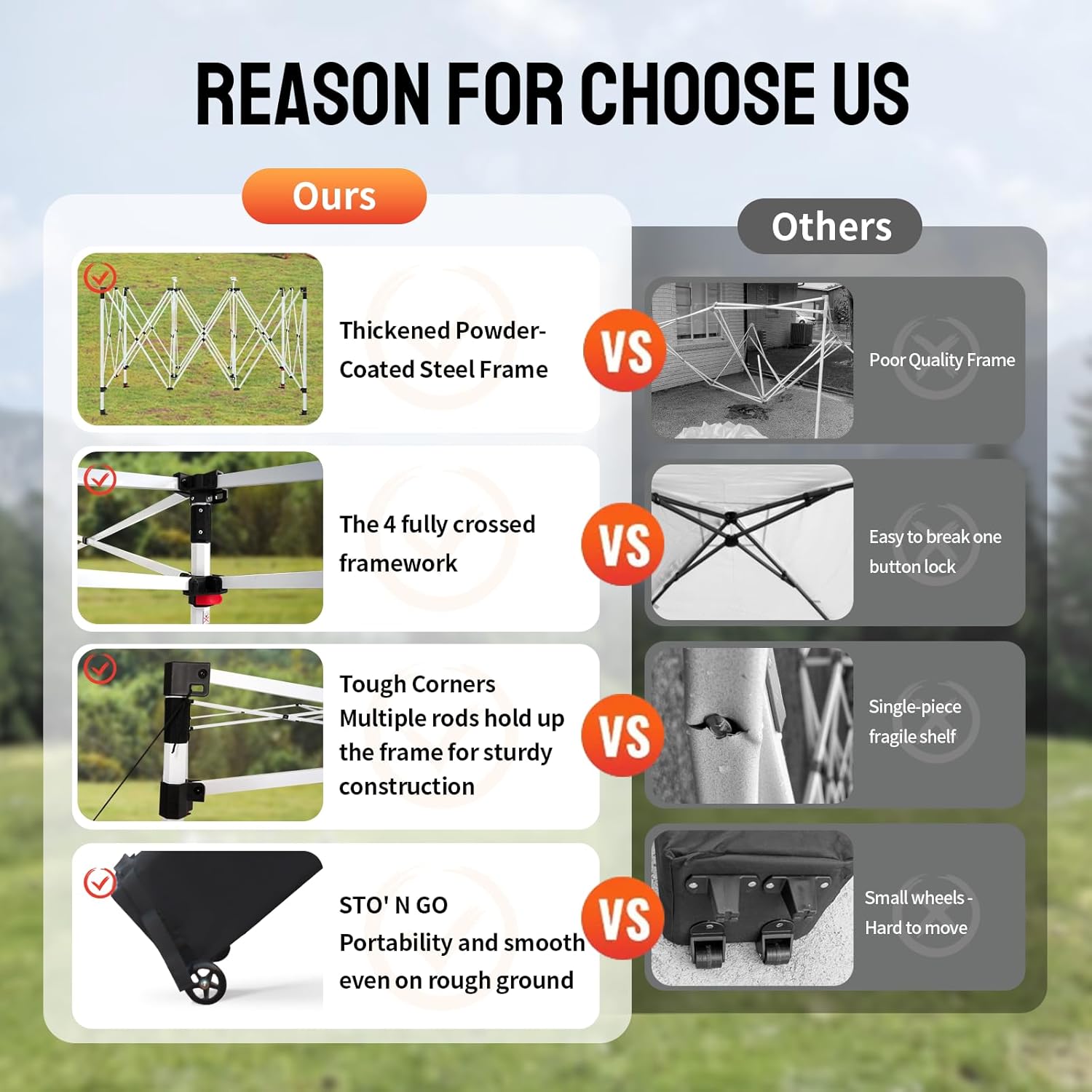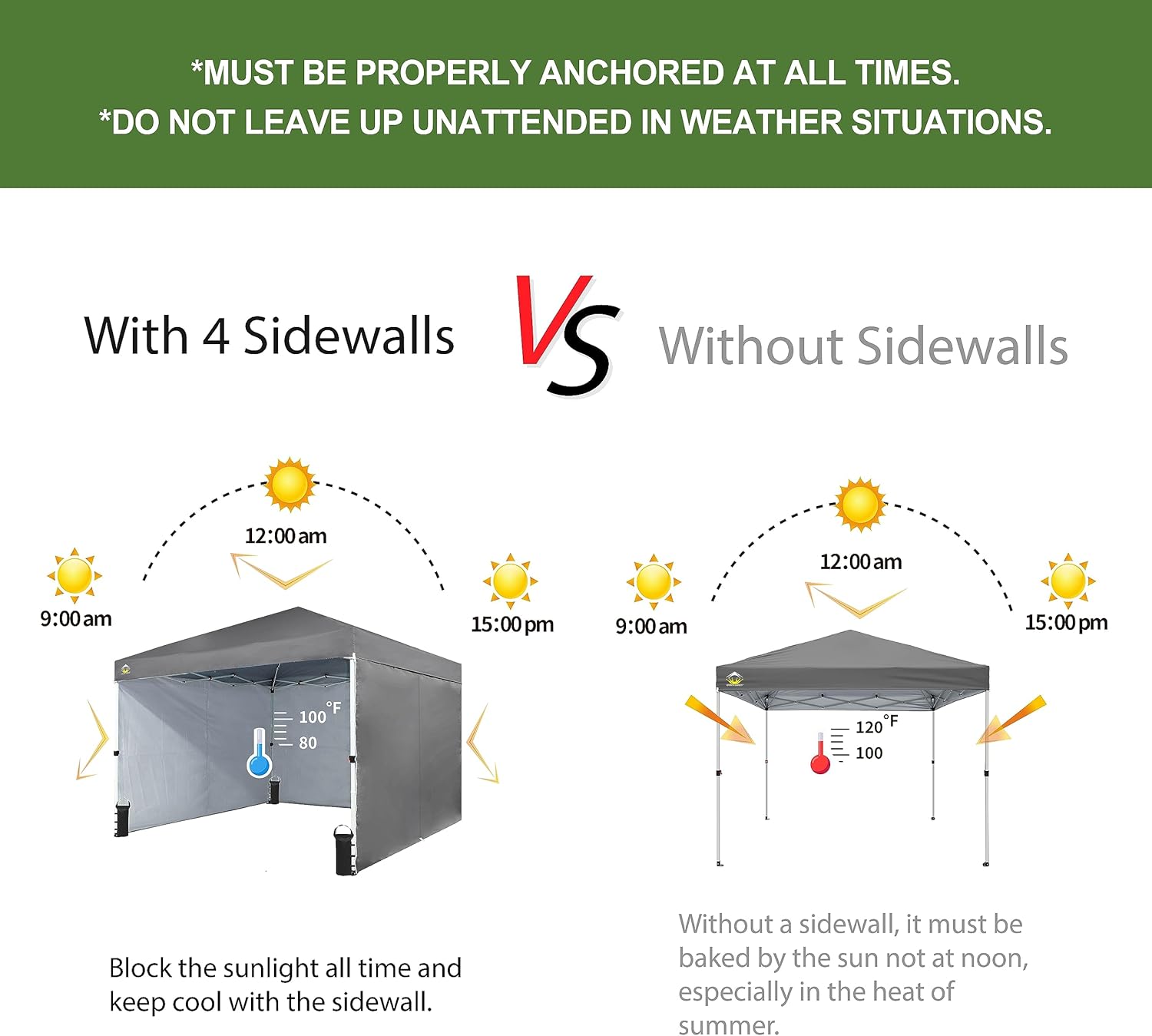 SUPERIOR STABILITY: This 10x15 outdoor canopy features a thickened powder-coated steel frame, enhancing durability and stability. Designed to withstand various conditions, it includes heavy-duty stakes, ropes, and sandbags, ensuring reliable performance in harsh environments.