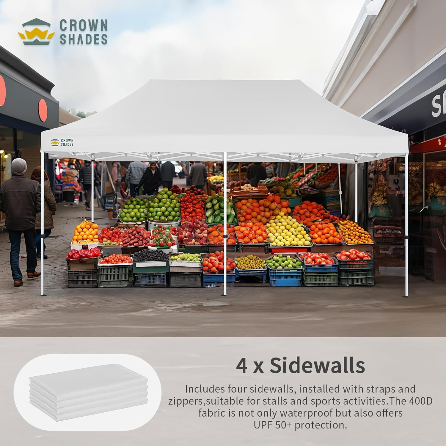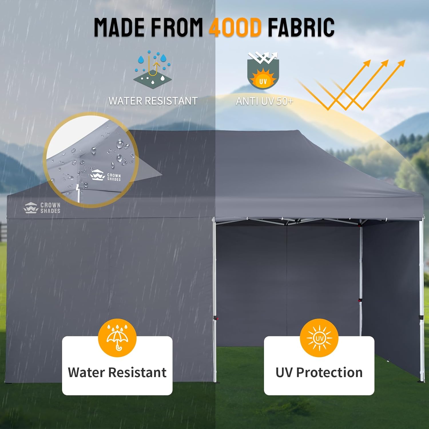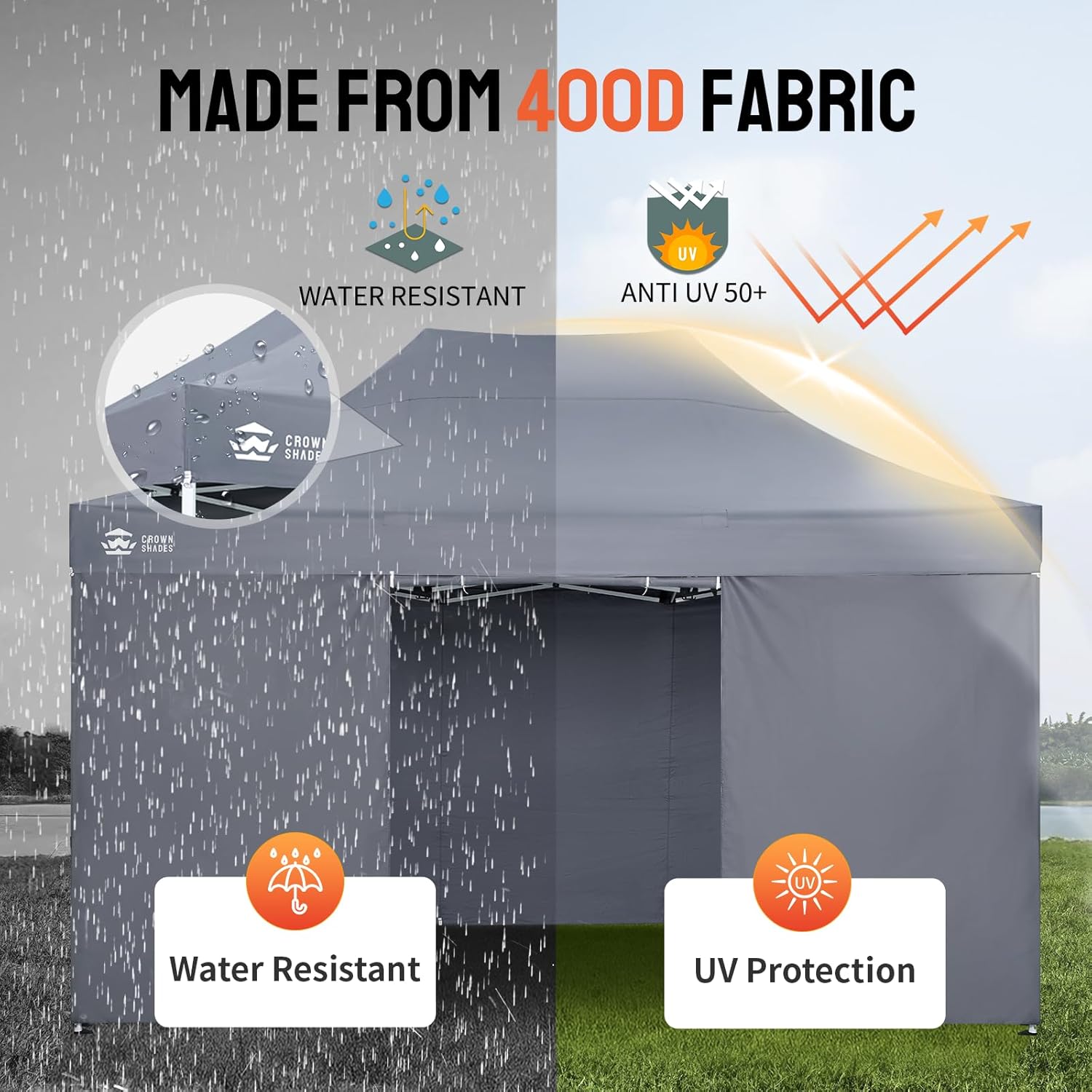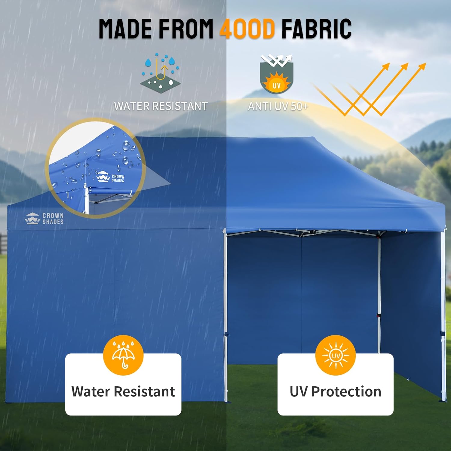 ADVANCED MATERIAL EXCELLENCE: Made from durable 400D Oxford fabric for increased reflectivity, the heavy-duty canopy offers comprehensive waterproofing and UV protection exceeding SPF50+. It is perfect for providing shade at outdoor markets or sports events.