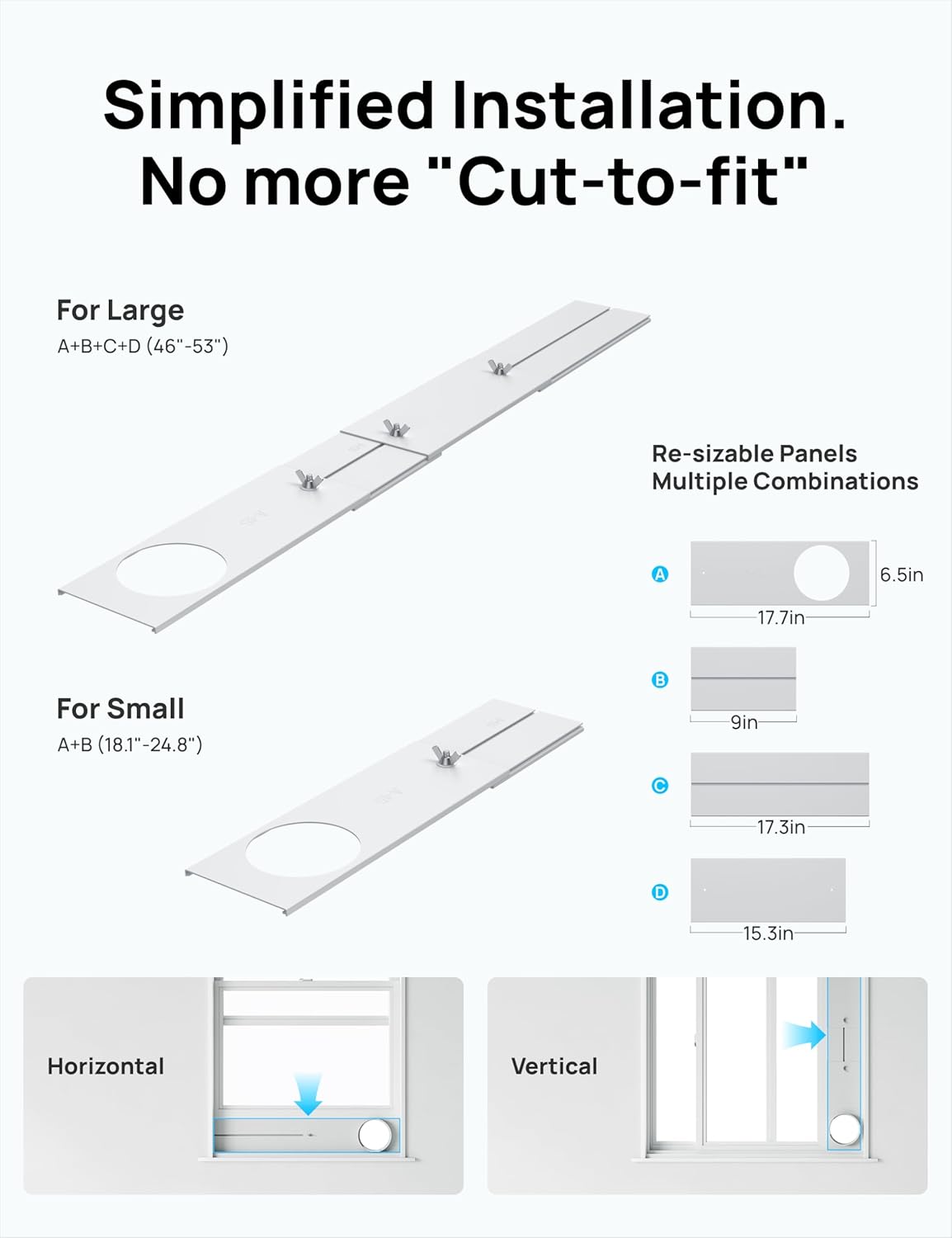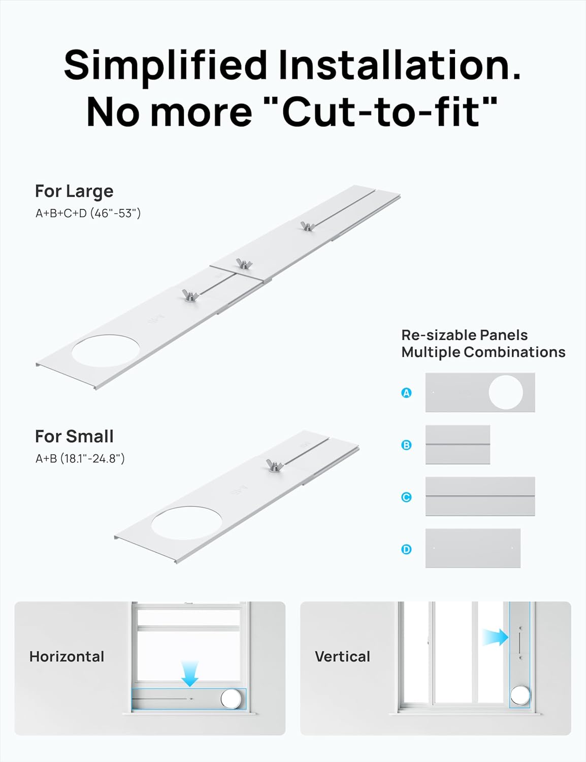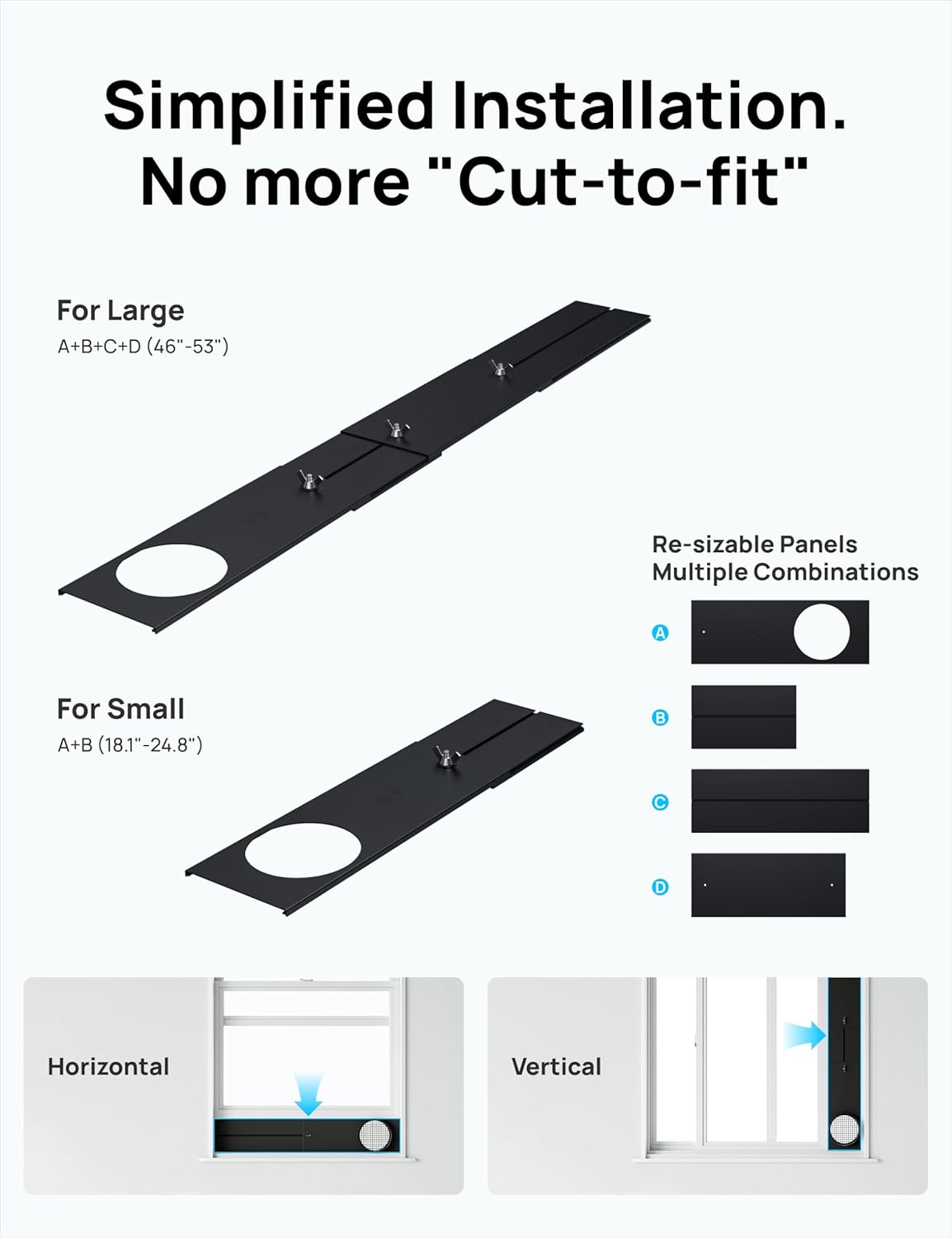 - 𝗨𝗻𝗶𝘃𝗲𝗿𝘀𝗮𝗹 𝗪𝗶𝗻𝗱𝗼𝘄 𝗖𝗼𝗺𝗽𝗮𝘁𝗶𝗯𝗶𝗹𝗶𝘁𝘆: featuring an adjustable sliding panel kit (17"–53" range), it fits double-hung, sliding, and casement windows without permanent modifications. Achieve airtight sealing in under 30 minutes using reinforced brackets and dual-layer insulation foam for maximum energy efficiency.