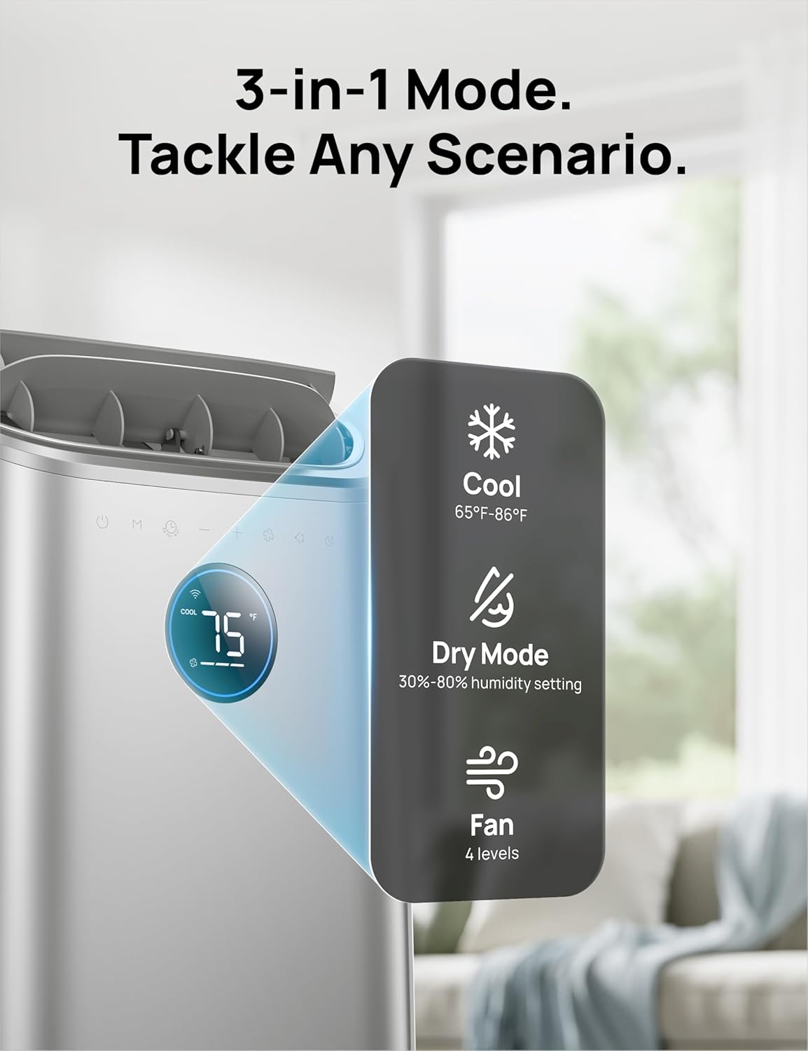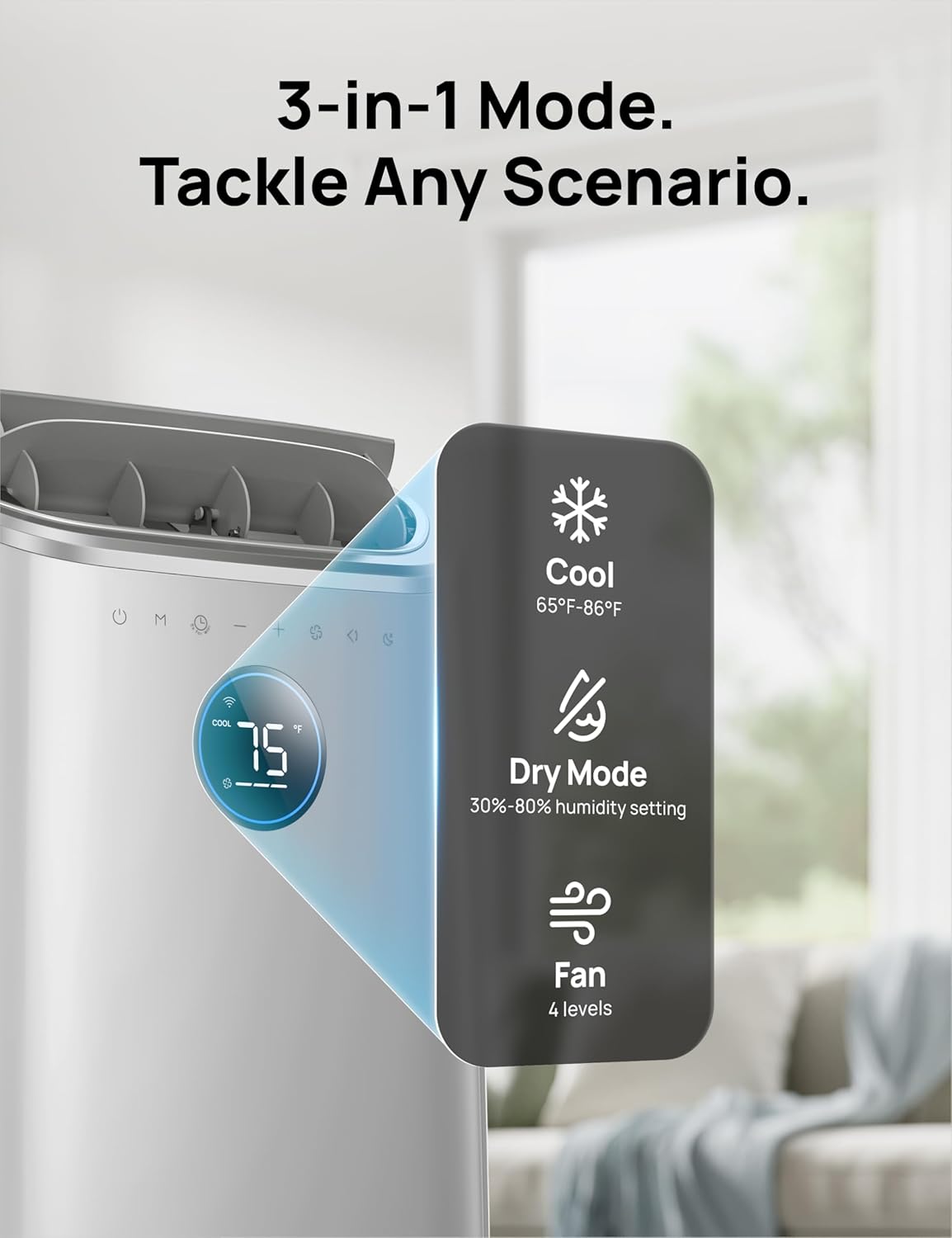 - 𝟯-𝗶𝗻-𝟭 𝗠𝗼𝗱𝗲 𝗩𝗲𝗿𝘀𝗮𝘁𝗶𝗹𝗶𝘁𝘆: DREO standing air conditioner combines precision cooling, dehumidification, and air circulation modes in a single unit. Optimize your environment for summer heatwaves, high-humidity days, or gentle airflow needs for year-round comfort.