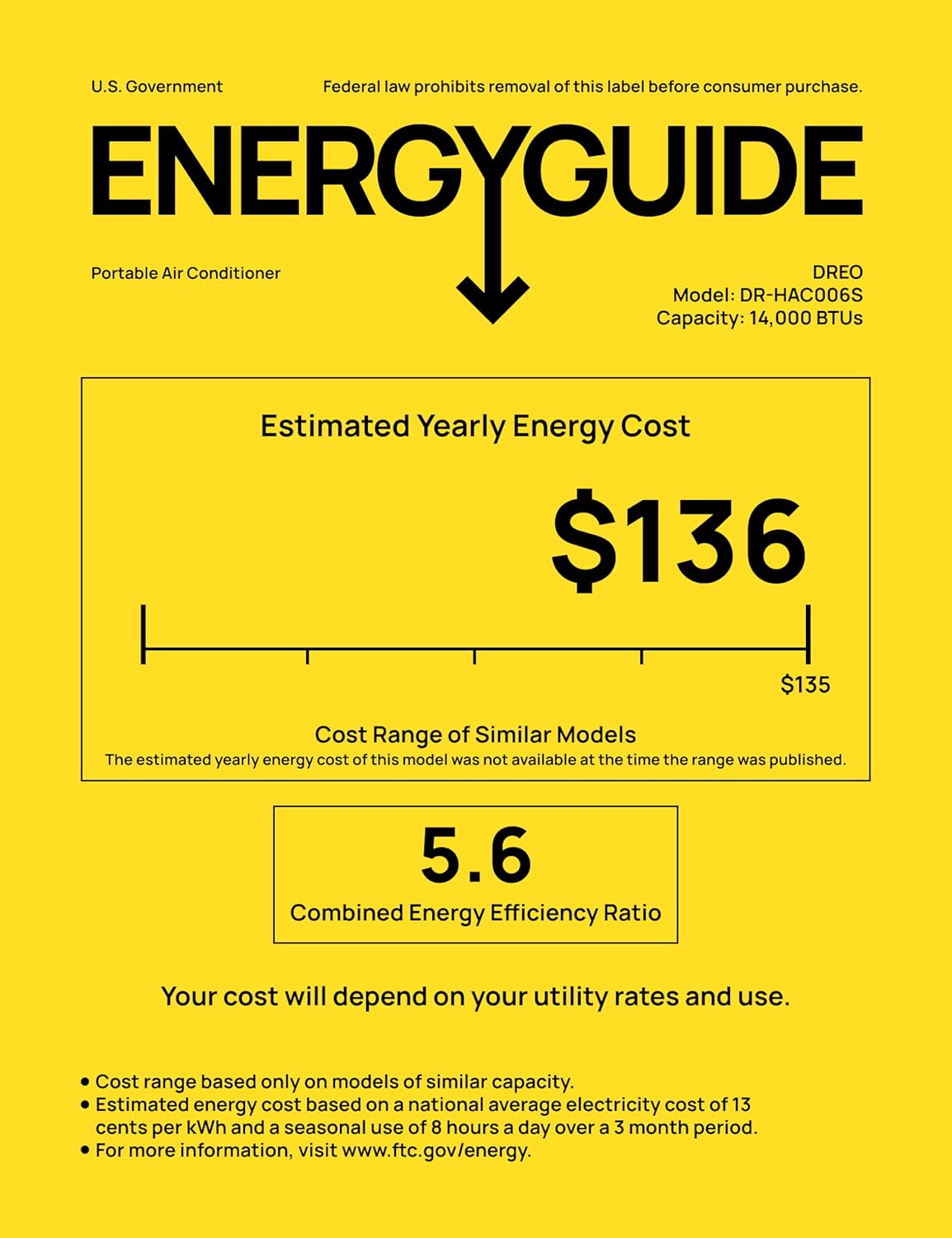 | Seasonal Energy Efficiency Ratio (SEER) | 5.6 |