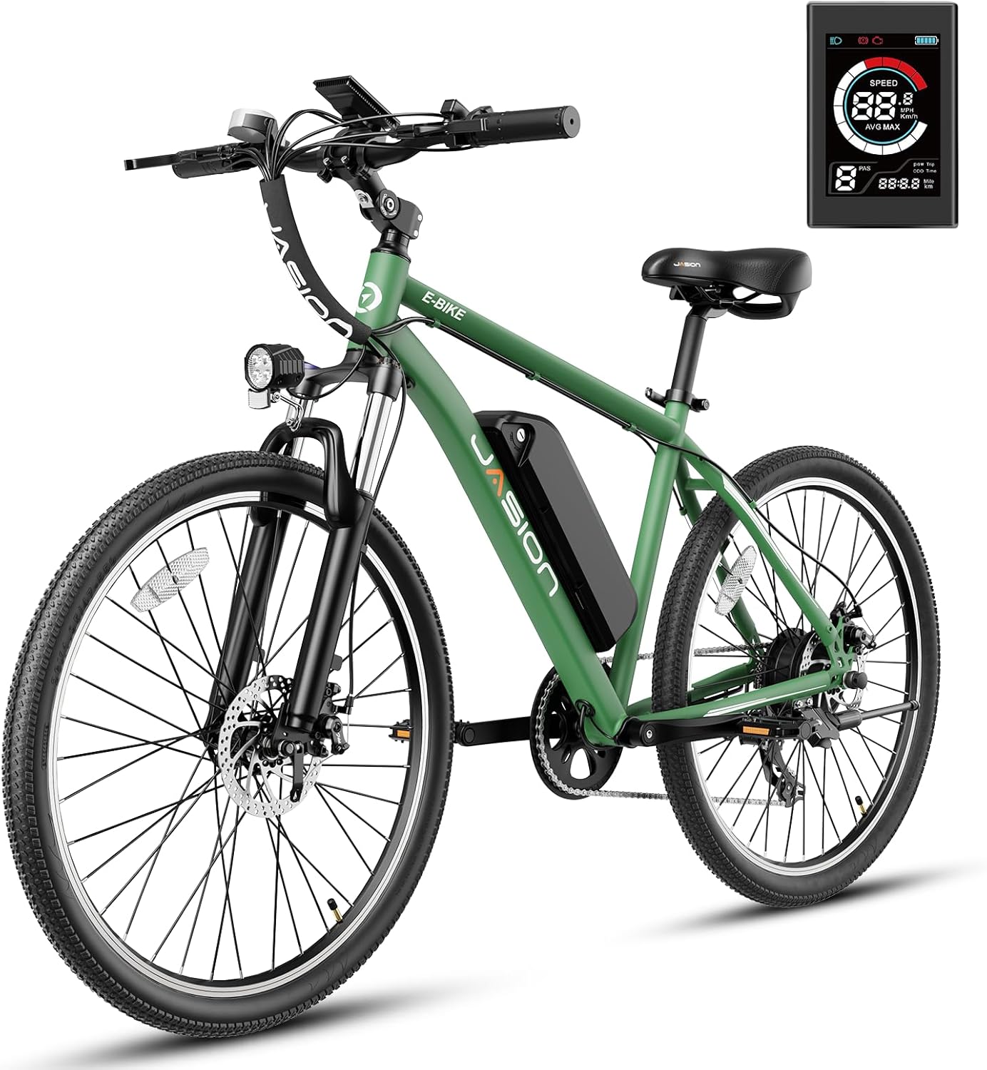 • Jasion EB5 Electric Bike for Adults with Peak 500W Brushless Motor, 40Miles 20MPH Commuting Electric Mountain Bike with 360Wh Removable Battery, 7-Speed, 26" Tires and Front Fork Suspension