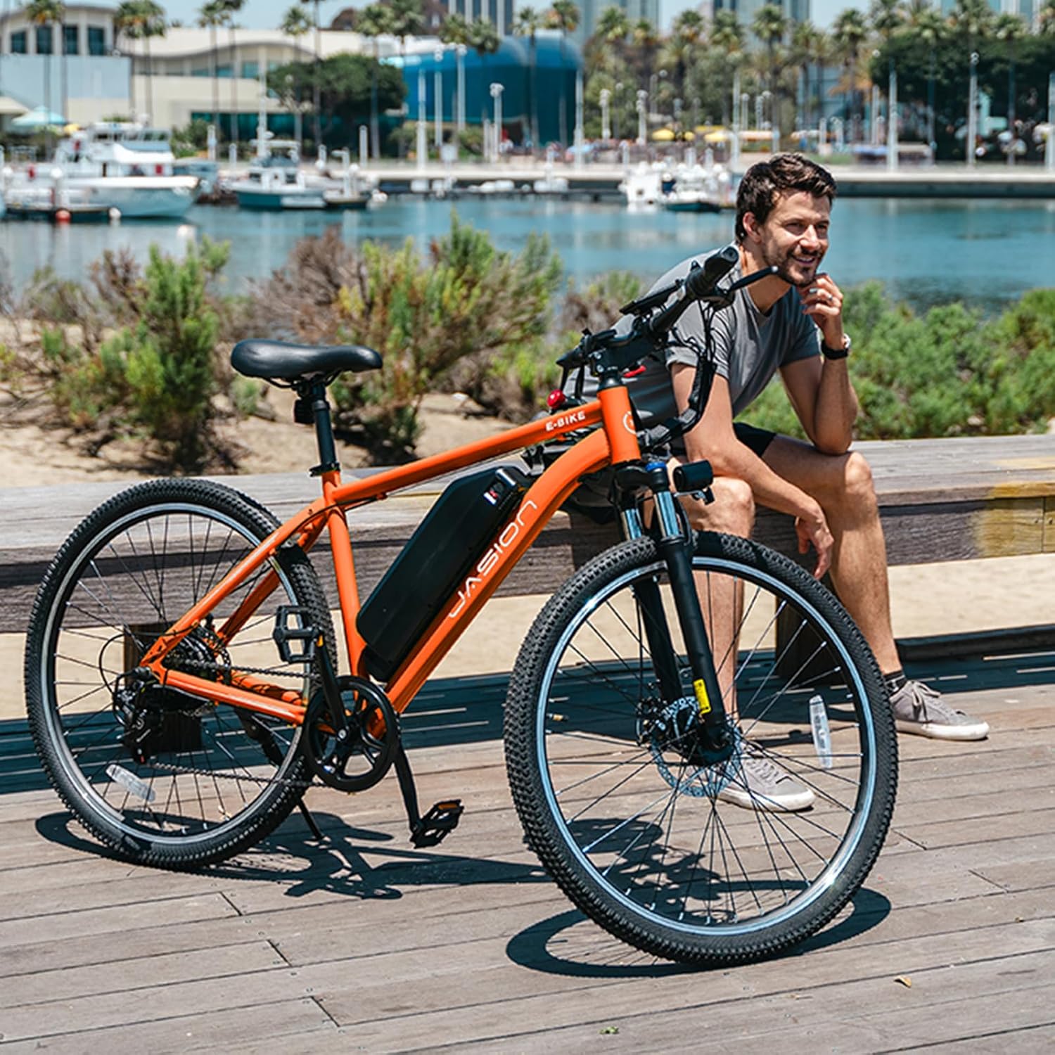 Jasion EB5 electric mountain bike applies the classic mountain bike style. The removable battery allows you to charge it at home or office conveniently. Ranges up to 40 miles on a single charge, making it easier for you to travel between city streets.