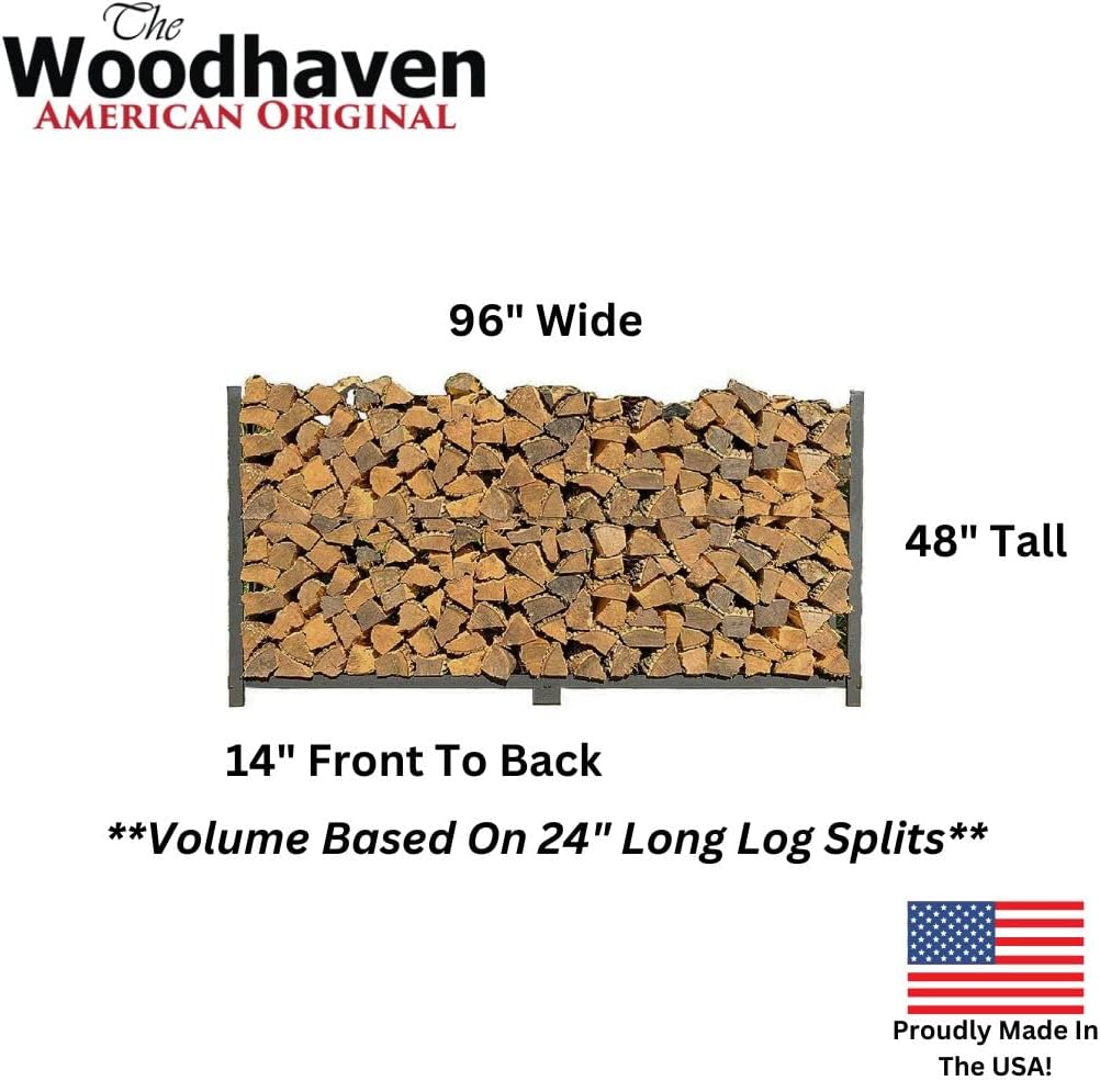 Woodhaven 8 Foot 1/2 Cord Firewood Log Rack With Optional Cover - Made In USA - Outdoor Use Lifetime Structural Warranty - Black Texture Powder Coat Finish - Made With Heavy Duty Steel